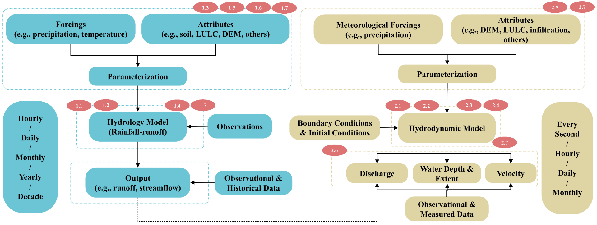 The HydroPML includes rainfall-runoff hydrological process understanding and hydrodynamic process understanding.